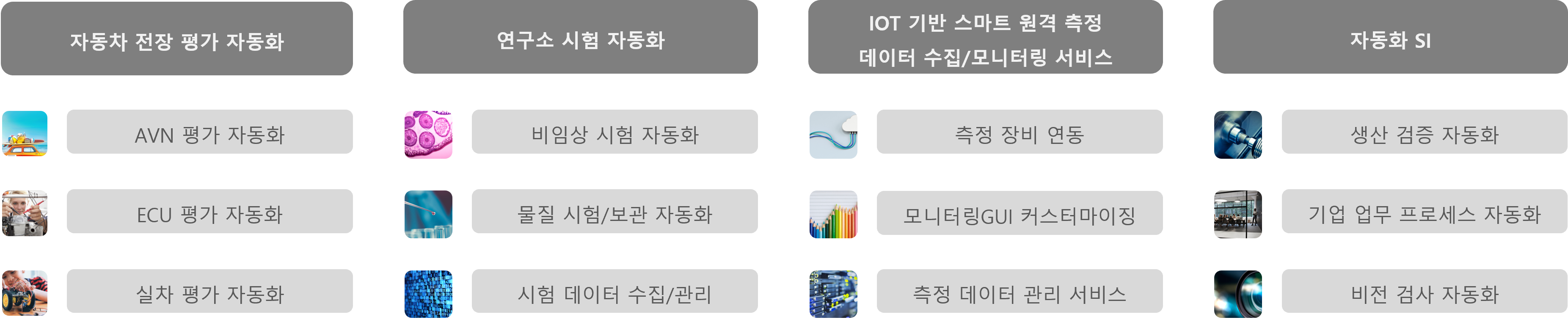 현대자동차, 현대모비스, LG전자 등 완성차/부품사들의 자동차 전장 평가 자동화를 기반으로